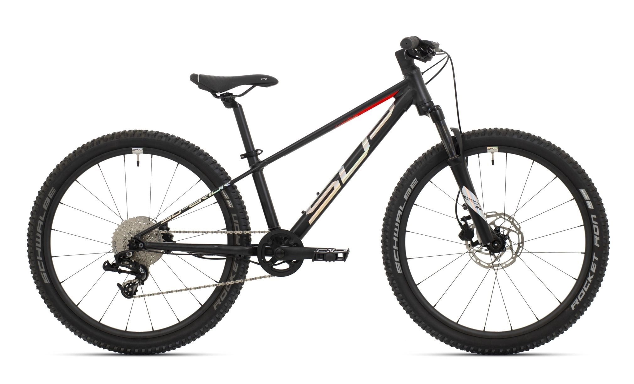 Kombinationen av en kvalitativ aluminiumram, pålitliga växelkomponenter, dämpad luftgaffel med lockout, robusta 24-tummare med snabba kvalitetsgummin från Schwalbe (Rocket Ron Performance) och hydrauliska skivbromsar ger hög säkerhet, grym kontroll, rätt grepp och riktigt fin respons. En vass modell med en modern konstruktion som passar ambitiösa juniorer som älskar när det går riktigt fort i spåren… vi är helt säkra på att du kommer få jobba ordentligt för att hitta en vassare hoj på den här prisnivån!