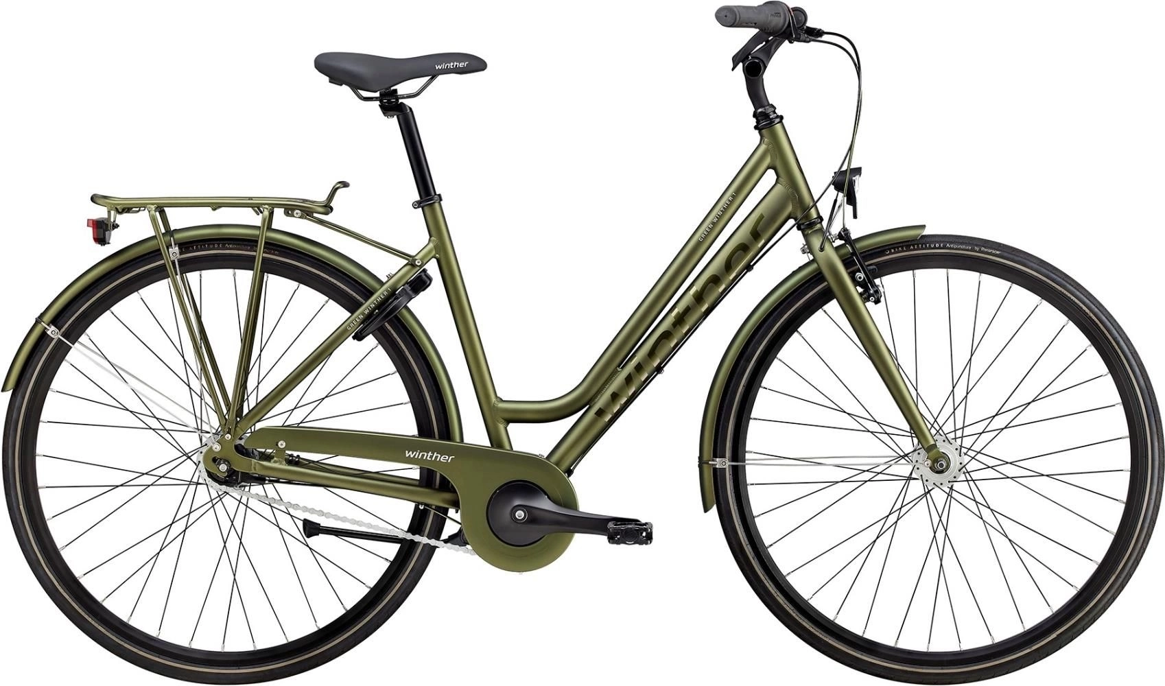 Eleganta Green Winther 1 är en kvalitativ stadscykel för kräsna vardagscyklister som uppskattar hög komfort, pålitlig funktionalitet och högklassig dansk design. Modellens varma färg kännetecknas av att den verkligen låter din personlighet träda fram, och med sin sobra nyans och diskret stilrena grafik är den verkligen ett lockande alternativ. Så om du letar efter en bekväm, problemfri, smakfull och extremt välutrustad skandinavisk cykel som trivs med att rulla långt så är det här ett näst intill självklart val.