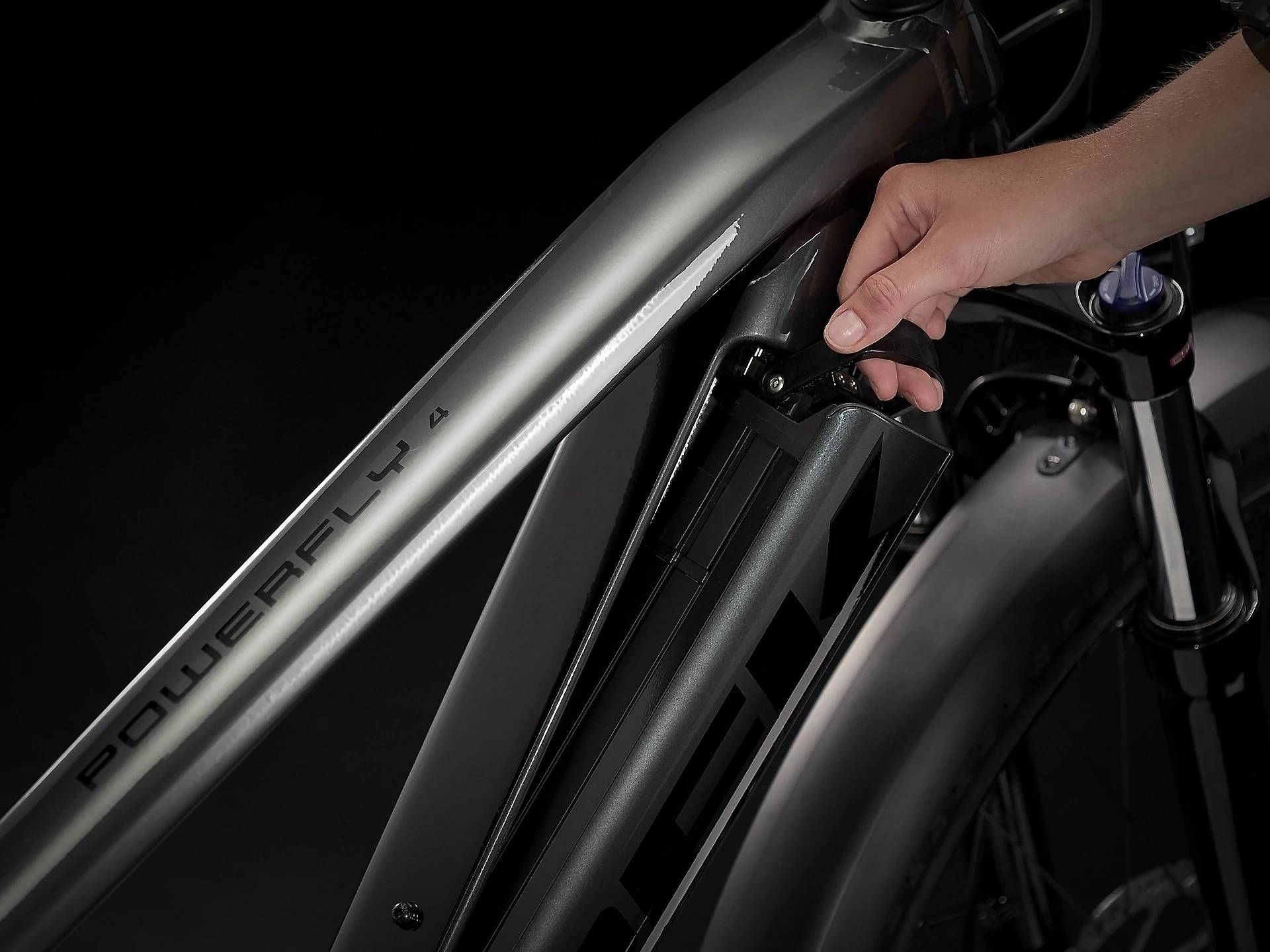 Treks RIB-system (Removable Integrated Battery) har en attraktiv design och är mycket användarvänligt: batteriet skyddas helt av ramen och det är enkelt att ta loss utan verktyg, och du får till och med plats med ett flaskställ. De har dessutom ett inbyggt handtag som smidigt och enkelt kan avlägsnas och återmonteras i ramen utan användning av verktyg. Och eftersom både batteriet och elmotorn är placerat i ramens nedre del uppnås en föredömligt låg tyngdpunkt, vilket ger dig klanderfri manöverförmåga ute i terrängen.