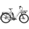 Kraften levereras av tyska Bosch och består av en kvalitativ elmotor (Performance Line) med 65Nm i vridmoment vilket kombineras med ett kraftfullt batteri (500Wh) som ser till att långa sträckor inte utgör några problem. Elmotorn jobbar tillsammans med en näst intill underhållsfri drivlina med 5 bergsäkra navväxlar från Shimano (Nexus Inter-5E) som levererar pålitlig prestanda och ett brett växelomfång, oavsett både årstid och väderförhållanden. Växlarna hanteras dessutom via ett lättmanövrerat reglage som ger dig möjligheten att skifta mellan växlarna utan att det känns det minsta ansträngt. Motor och växel samarbetar dessutom i en sömlös harmoni och allt sker effektivt, tyst och ger dig dessutom en minst sagt respektingivande räckvidd.