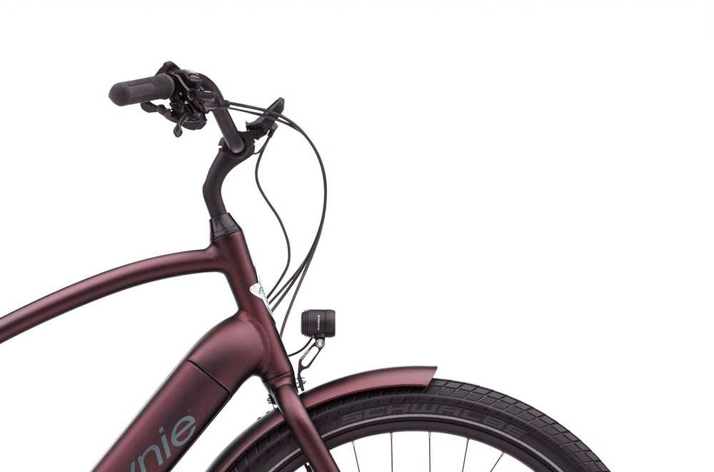 Stommen utgörs av en robust ram i aluminium (6061-T6) med elegant invändig kabeldragning, vilket både ger ett prydligare utseende och ökar skyddet mot både väta, slask och smuts. Ramen har en tydligt komfortinriktad geometri som sätter smidig manöverförmåga, god uppsikt och framkomlighet i fullt fokus. Med andra ord har den en extremt bekvämt upprätt åkställning som verkligen låter dig njuta av omgivningen när du smärtfritt trampar fram i din egna takt. På ramen hittar du redan från start många av de praktiska tillbehören som har potential att förenkla din vardag. Eller vad sägs om en MIK-kompatibel bakre pakethållare i aluminium som klarar tunga laster, heltäckande skärmar samt en kraftfull främre och bakre belysning som ser till att du syns även när mörkret faller.