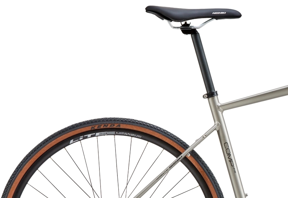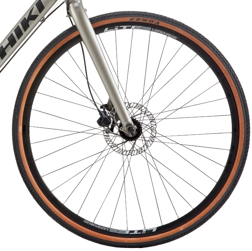 De tåliga hjulen med förstärkta ekrar har Nishiki´s egenutvecklade asymmetriska fälgar som gör hjulen starkare genom att jämna ut ekerspänningen mellan höger och vänster sida. På hjulen sitter ett par snabba gummin från Kenda med 37mm bredd och punkteringsskydd, vilket ser till att cykeln utan problem klarar småstökiga grusvägar. En cyklande zenbuddhist skulle nog kalla storleken för den ”gyllene medelvägen”… kör du med lite lägre lufttryck så höjer du komforten och uppnår bättre skydd mot vassa föremål och grus, allt för att du ska få så bekymmersfri cykling som möjligt (främst på lösare underlag). Håller du däcken väl pumpade så står de pall för det mesta och du får en fantastiskt lättrullande cykel (främst på hårdare underlag) som gör dig lika glad varje gång du trampar iväg från klungan.