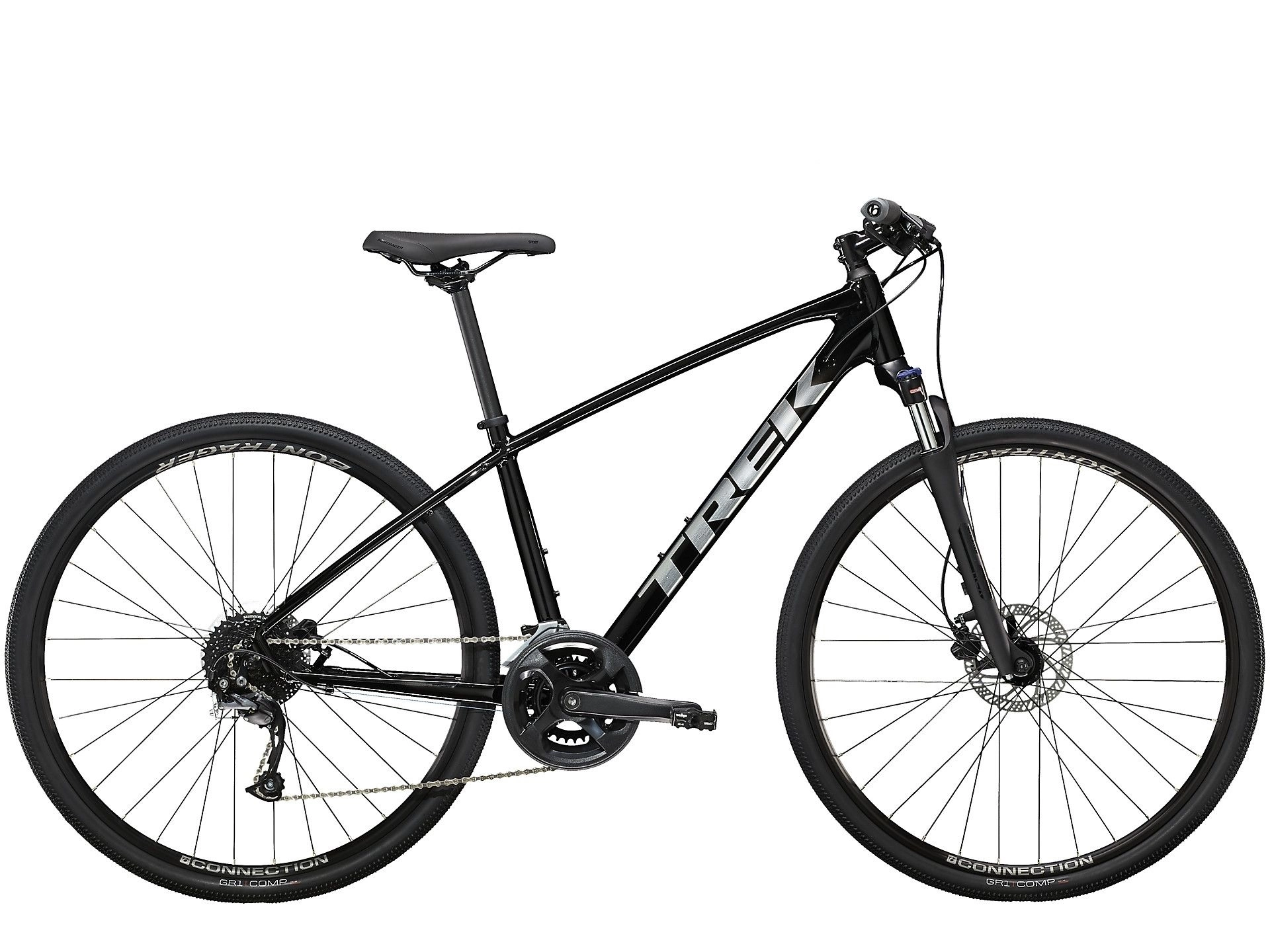 Ibland kan det känns säkrast att ta de asfalterade vägarna. Andra gånger väljer du gropigt grus eller en halvstökig skogsstig. Letar du efter en hybridcykel som klarar alla dina äventyrliga infall? Ska den också vara en bra pendlare och ha komfortfunktioner som tryggt kan hantera varierande typer av terräng. Den mångsidiga Trek Dual Sport 2 är en underhållande hoj för alla typer av sammanhang, speciellt konstruerad för att du ska kunna upptäcka mer av vår underbara värld. Asfalt? Grus? Stig? Ja, den briljerar på faktiskt på nästan alla typer av underlag. Lätt stomme i aluminium med invändig vajerdragning, låsbar dämpad framgaffel samt en pålitlig 18-växlad drivlina med ett växelomfång som ser till att du aldrig behöver trampa för mycket eller för lite. Den har även greppsäkra terrängdäck som har överraskande bra rull samt hydrauliska skivbromsar med vädersäker bromskraft oavsett årstid. Dedikerade fästpunkter för pakethållare och skärmar samt möjlighet till elektronisk loggning av cykeldata bidrar ytterligare till dess mångsidighet.