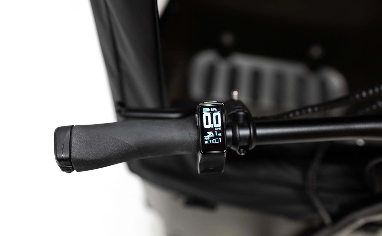 Kraften levereras av danska Promovec och består av en centralt placerad mittmotor samt ett kraftfullt batteripack som är smart placerat under själva lastutrymmet. Batteriet levererar mängder av miljövänlig kraft som ser till att du får massor av extra krut i både ben och lungor i upp till hastigheter av maximalt 25 km/h. Det potenta elsystemet har riktigt bra stuns, men minst lika imponerande är elmotorns tysta gång och dynamisk känsla som ser till att hela drivlinan reagerar så beundransvärt följsamt på trampornas instruktioner. Det beror till stor del på de högklassiga kraftsensorna och i praktiken innebär det att när du trampar lugnt och varsamt så får du en mjuka och lugn assistans. Trampar du istället snabbare, och framförallt hårdare, så får du en betydligt mer kraftfull assistans (dock max upp till 25 km/h). Med mittmotor uppnås dessutom bästa tänkbara balans vilket ytterligare bidrar till att skapa en naturlig cykelkänsla.