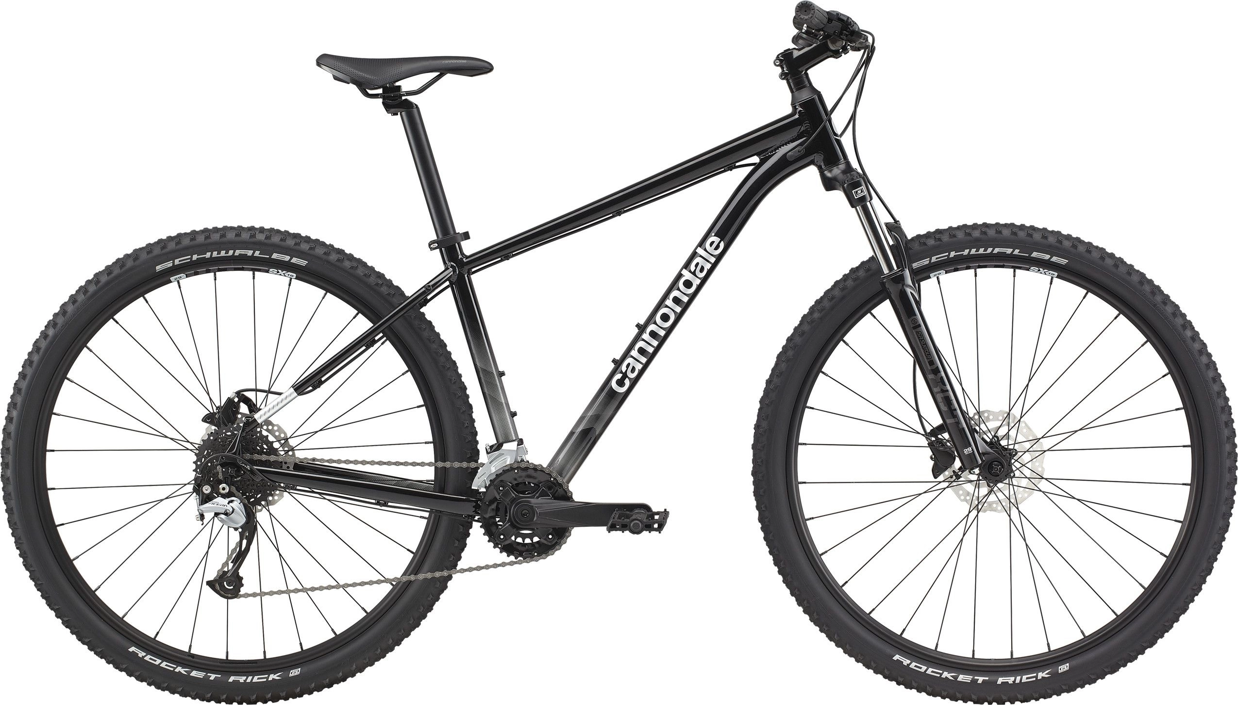 Hjulstorlek är anpassad efter ramens storlek (29″-hjul på större ramar och 27,5″-hjul på mindre) vilket ger dig en väl avvägd balans mellan hastighet, manöverförmåga och kontroll. Det slitstarka hjulsetet består av robusta aluminiumfälgar och greppvänliga gummin från Schwalbe (Rocket Rick) med 2.25″ bredd som kan hanterar allt från slät asfalt till småstökig skogsterräng.