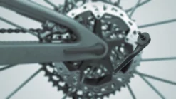 Den bakre dämparen är elegant integrerad i ramen, det ger såklart en otroligt clean design men det skapar även låg tyngdpunkt och det ser dessutom till dämparen i princip aldrig behöver blir smutsig. Integreringen medger även att cykelns vevpartiet kan göras styvare och därmed ge effektivare kraftöverföring. Och att Scott lyckats göra det med bibehållet enkel åtkomst till dämparen (så att du enkelt kan justera både lufttryck, retur, kompression) tycker vi är en ganska hyfsad bonus. Addera dessutom en yttre indikator för inställning av dämparens SAG (enkel åtkomst via separat lucka med täcklock av gummi) och du har en given vinnare!