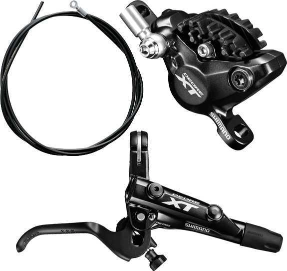 Shimano XT M8000 hydraulisk skivbroms bak levereras med 1700 mm bromsslang och resinbromsbelägg. Bromssystemet är fyllt med mineralolja vid leverans och klart att ta i bruk. Det medföljer en oliv och insert så att man kan kapa och justera bromsslangens längd. Bromsreglaget är kompatiblet med Shimanos I-spec II växelreglagefäste. Bromsskiva och eventuell adapter för montering av bromsoket säljs separat.